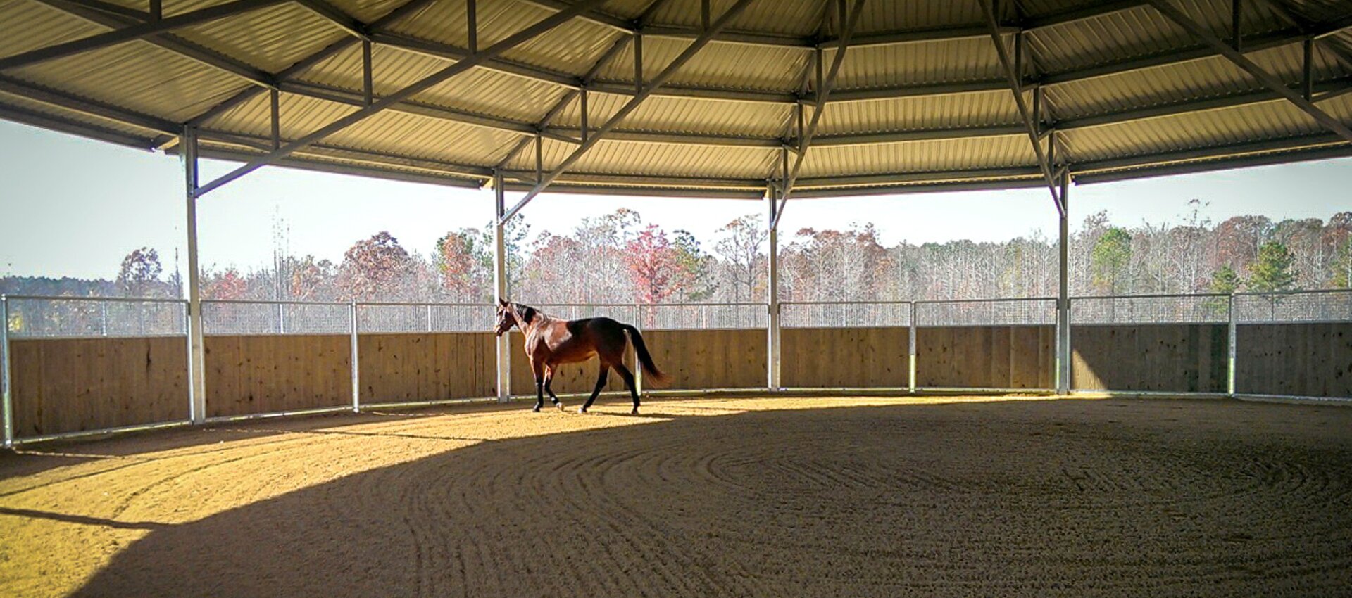 Longieren findet vielfältige Anwendungen. Ob beim Anreiten von jungen Pferden, beim Lockern vor dem Reiten oder beim Voltigieren – ruhiges und konzentriertes Arbeiten in der Longierhalle sind gewährleistet. Sie sorgt für Entlastung in der Reithalle.