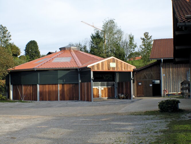 Longieren findet vielfältige Anwendungen. Ob beim Anreiten von jungen Pferden, beim Lockern vor dem Reiten oder beim Voltigieren – ruhiges und konzentriertes Arbeiten in der Longierhalle sind gewährleistet. Sie sorgt für Entlastung in der Reithalle.