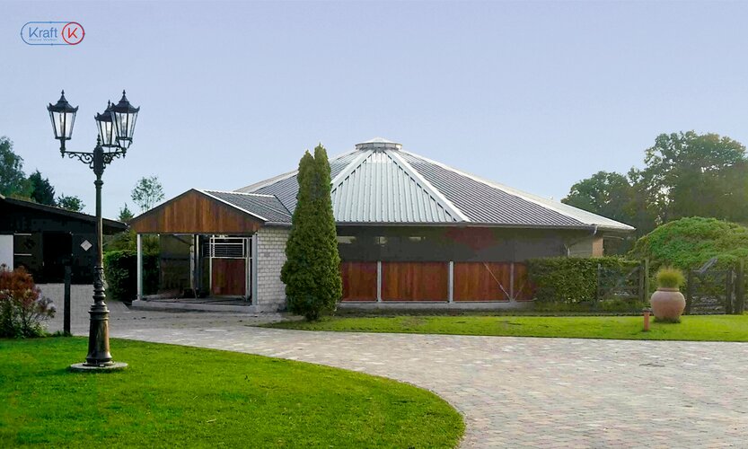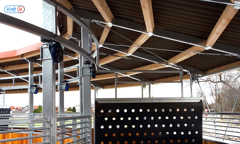 The double-ring provides stability and reduces noise. One can choose between a partial or complete roof.